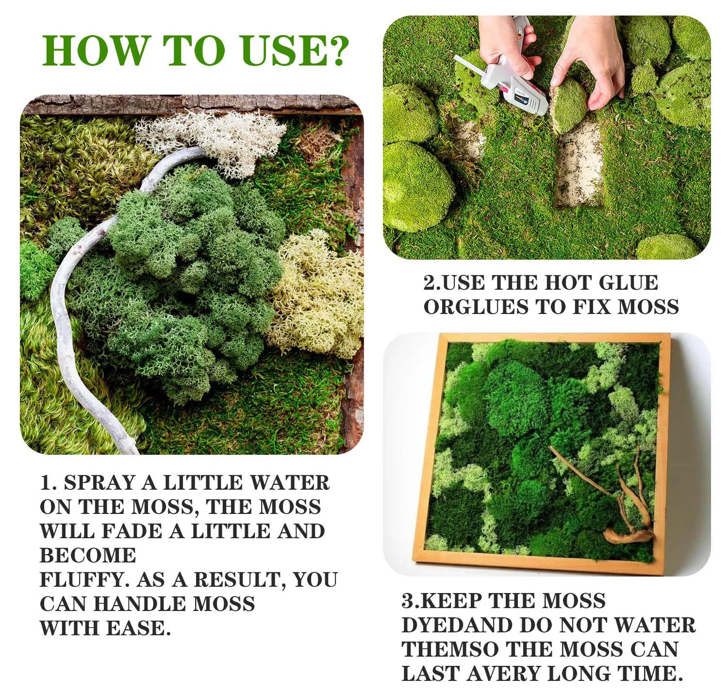 ✔ Use adhesive to attach moss to surfaces for long-lasting results.