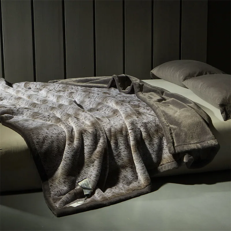 Artificial Mink Hair Fur Blanket High-end Double-layer Thickened Warm
