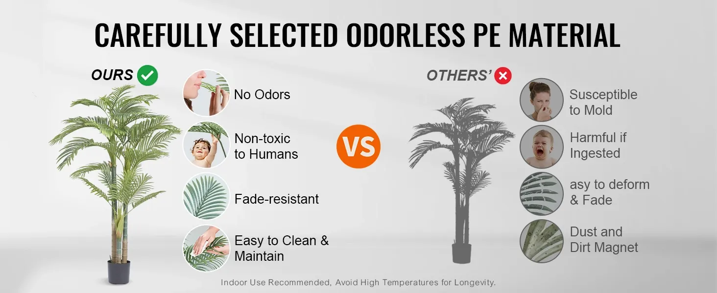 Compared to real palm trees, this artificial version offers:
