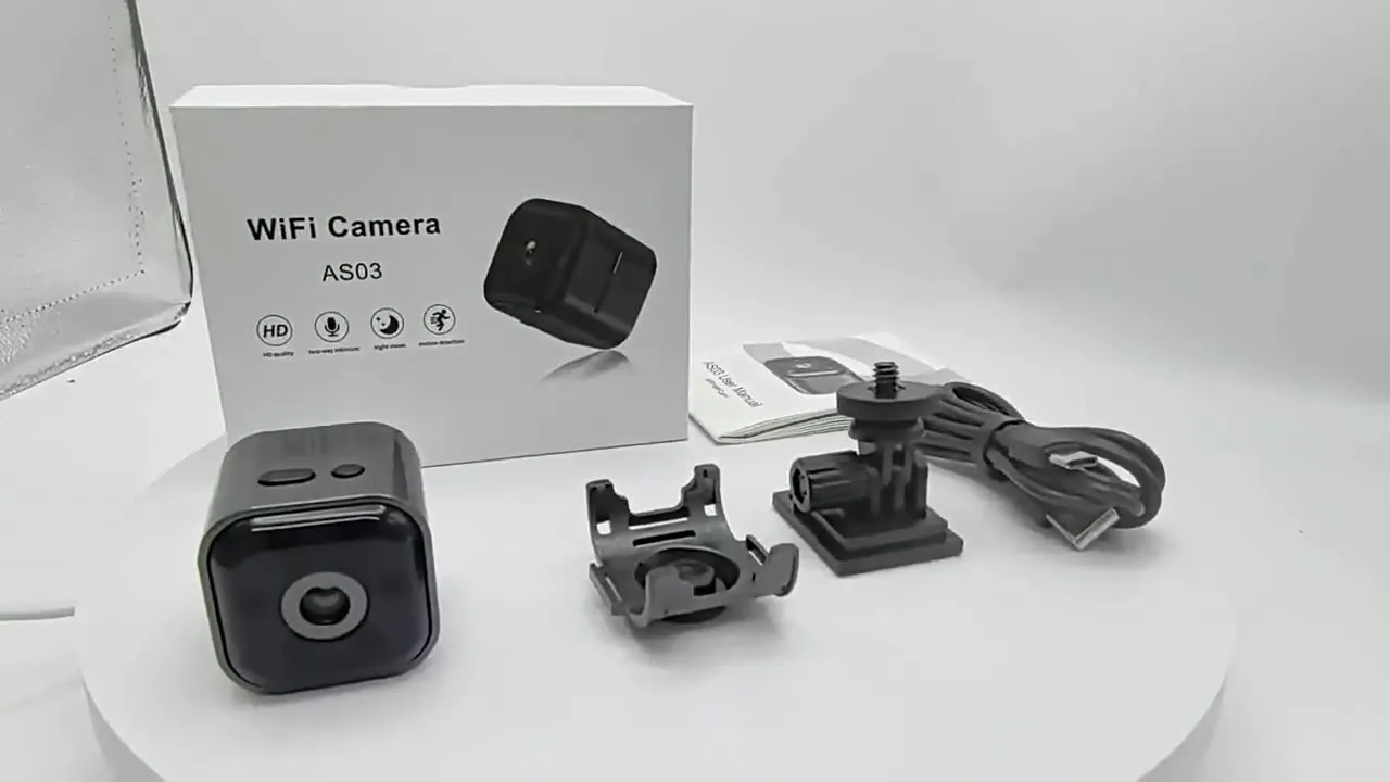 AS03 HD camera, smart WiFi camera, home security camera, night vision camera, remote viewing camera, HD security camera, WiFi security camera, voice-controlled security camera, portable home camera, camera with night vision.