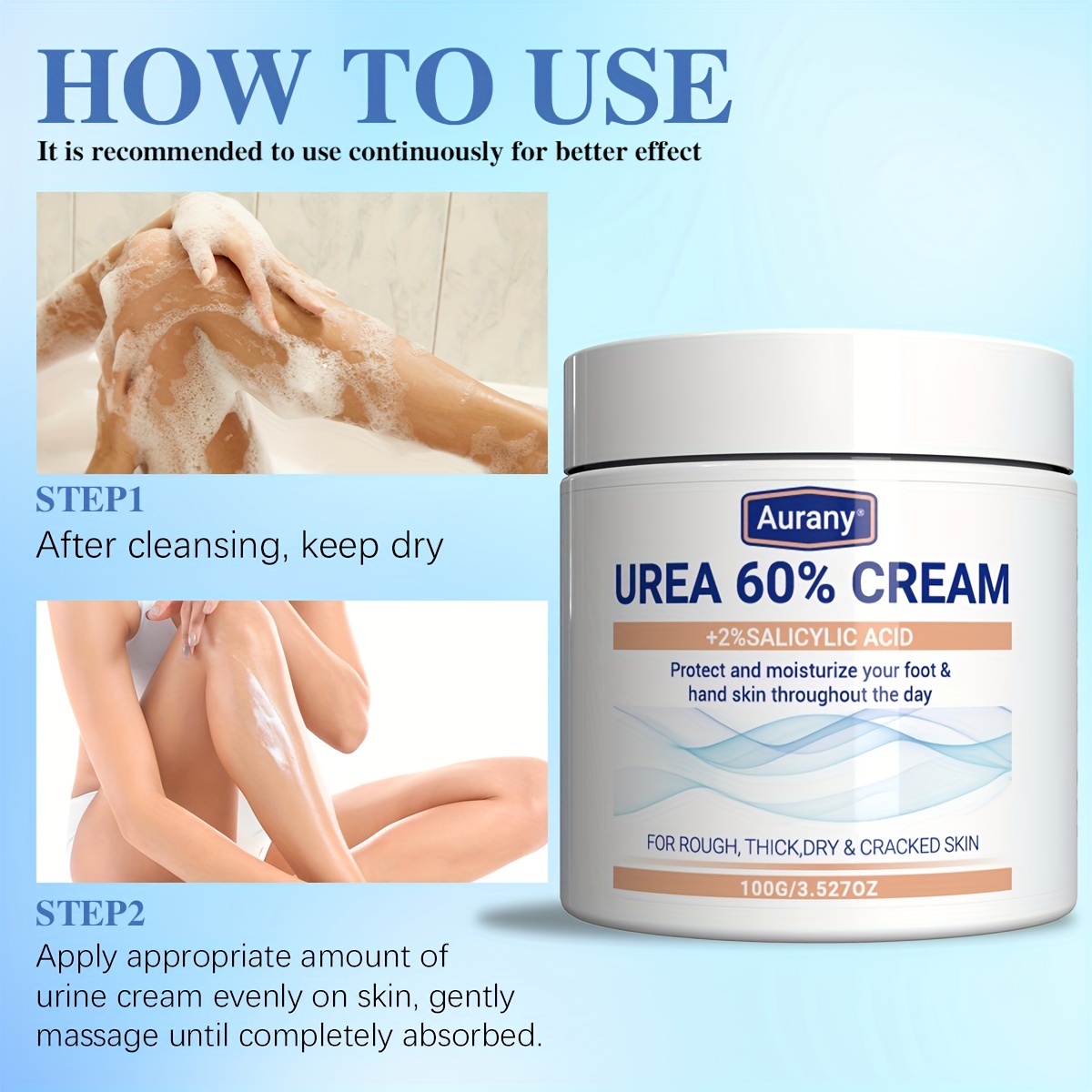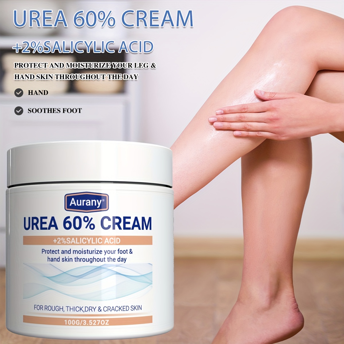 AURANY Urea 60% Foot Cream with 2% Salicylic Acid - 2 Pack, Alcohol-Free Moisturizing Lotion for Dry, Cracked Skin - Nourishing Glycerin Formula for Smooth Legs and Tender Feet - Effective for All Skin Types, Non-Drying 100g Each