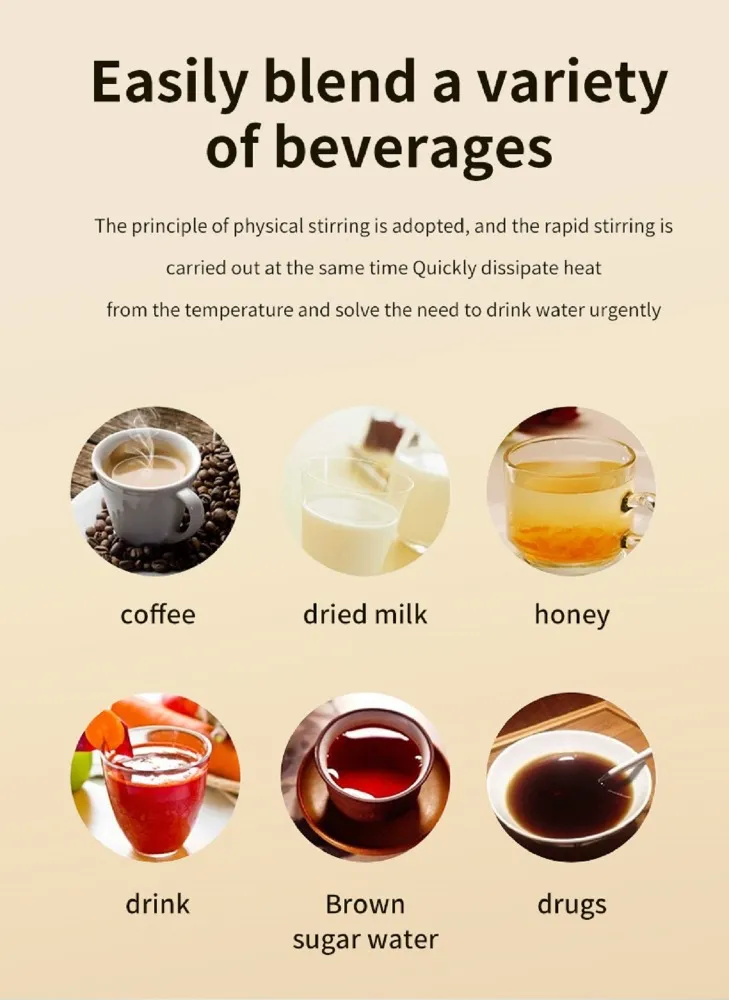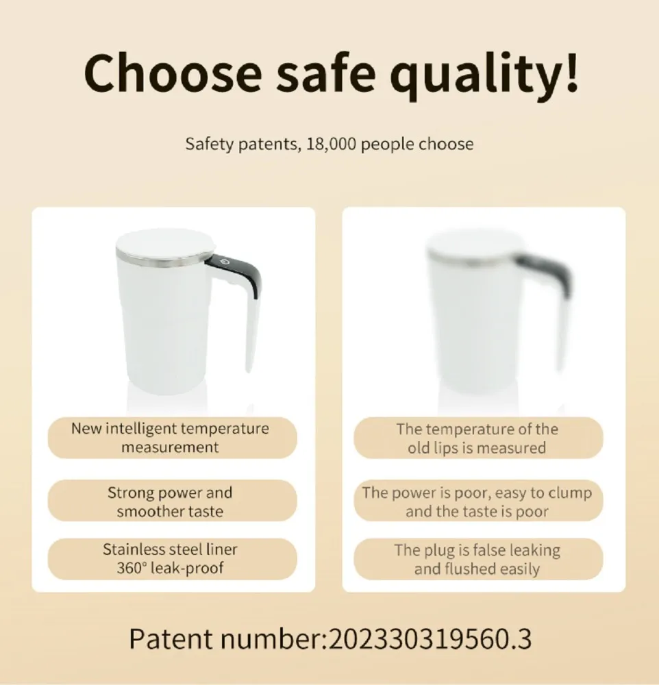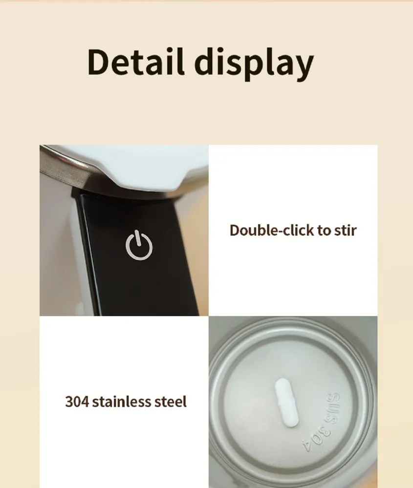 Self-Stirring Technology: The built-in motor automatically stirs your beverage, ensuring a smooth and consistent mix