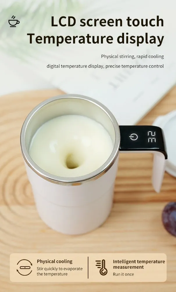 The Automatic Coffee Stirring Cup is an innovative coffee mug that features a self-stirring function and heating capability, all in one device. The cup is made of high-quality stainless steel, ensuring durability, insulation, and a sleek appearance. It’s perfect for people who want their drinks mixed and kept warm without the hassle of stirring or using external appliances. The LED Intelligent Display shows the real-time temperature of your beverage, allowing you to adjust it to your preference.