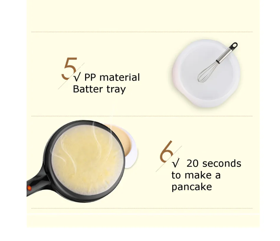 The Automatic Electric Baking Pan & Dough Machine is the ultimate kitchen gadget for effortless cooking and baking. Designed for versatility, this appliance can handle everything from preparing dough to cooking pancakes, flatbreads, crepes, tortillas, and more. Perfect for home cooks and baking enthusiasts, this machine combines convenience, efficiency, and modern design, making it a must-have for your kitchen.