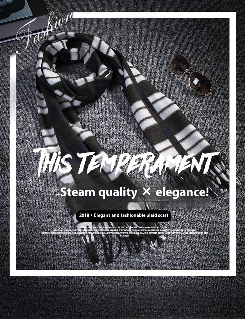 Autumn and Winter Black and White Plaid Plus-sized Thickening Thermal Scarf – Your Ultimate Cold-Weather Companion