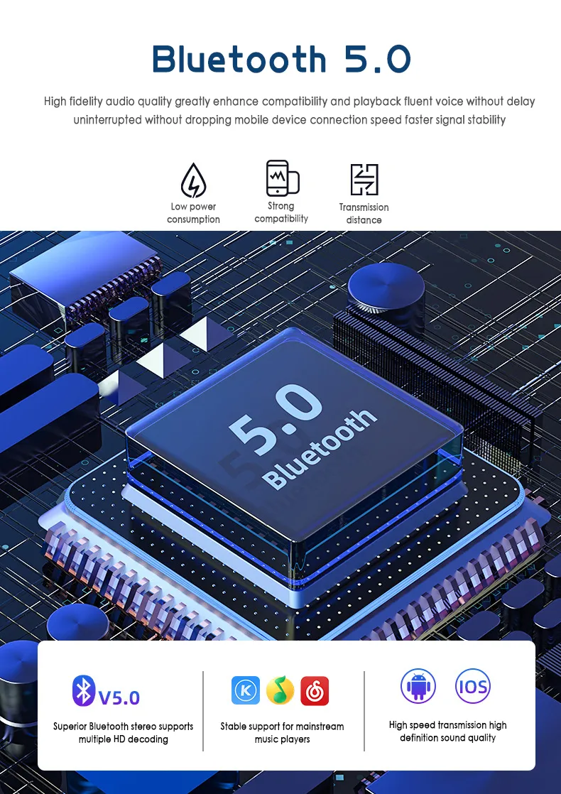 High-Quality Audio: With TWS 5.0 Bluetooth and binaural stereo sound, enjoy crystal-clear