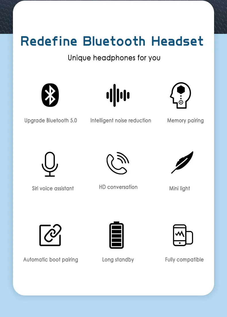 Equipped with TWS 5.0 Bluetooth, this headset provides a stable, fast, and high-quality wireless connection, allowing you to enjoy uninterrupted audio with a greater range and reduced latency. Whether you’re listening to music or taking calls, the connection is seamless and reliable.