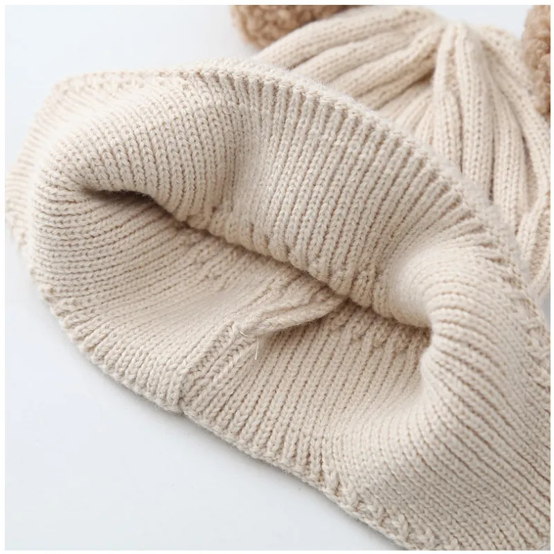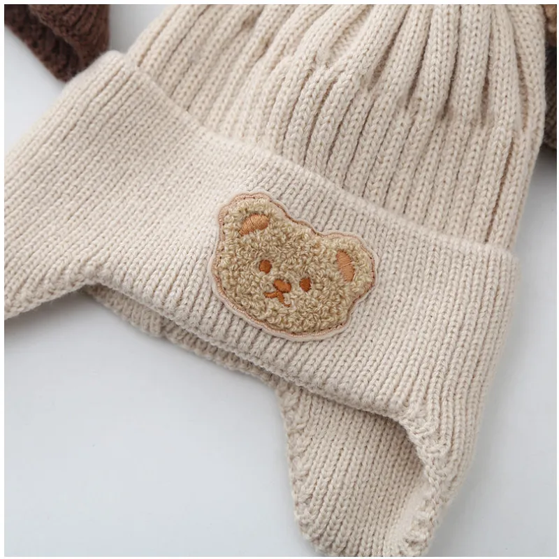 Baby Hat Warm Earflaps Cap Cute Bear Baby Knitted Woolen Cap