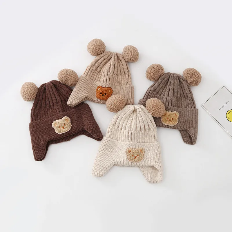 Why You Choose This Baby Hat Warm Earflaps Cap Cute Bear Baby Knitted Woolen Cap