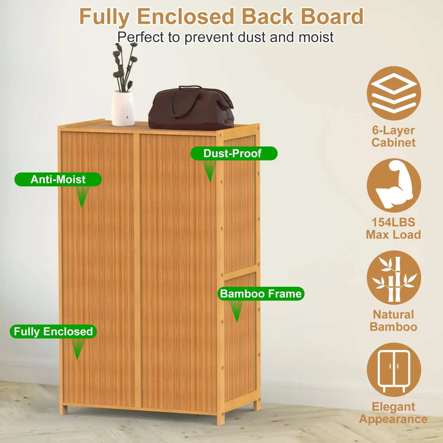 Practical Design: The bamboo shoe organizer features the back board to prevent dust and moist effectively. And adopts with 2 hollow panel doors to ensure excellent air ventilation, making your shoe rack always keep dry without smell. Besides, 2 handles on the door make it easy to open and close.
