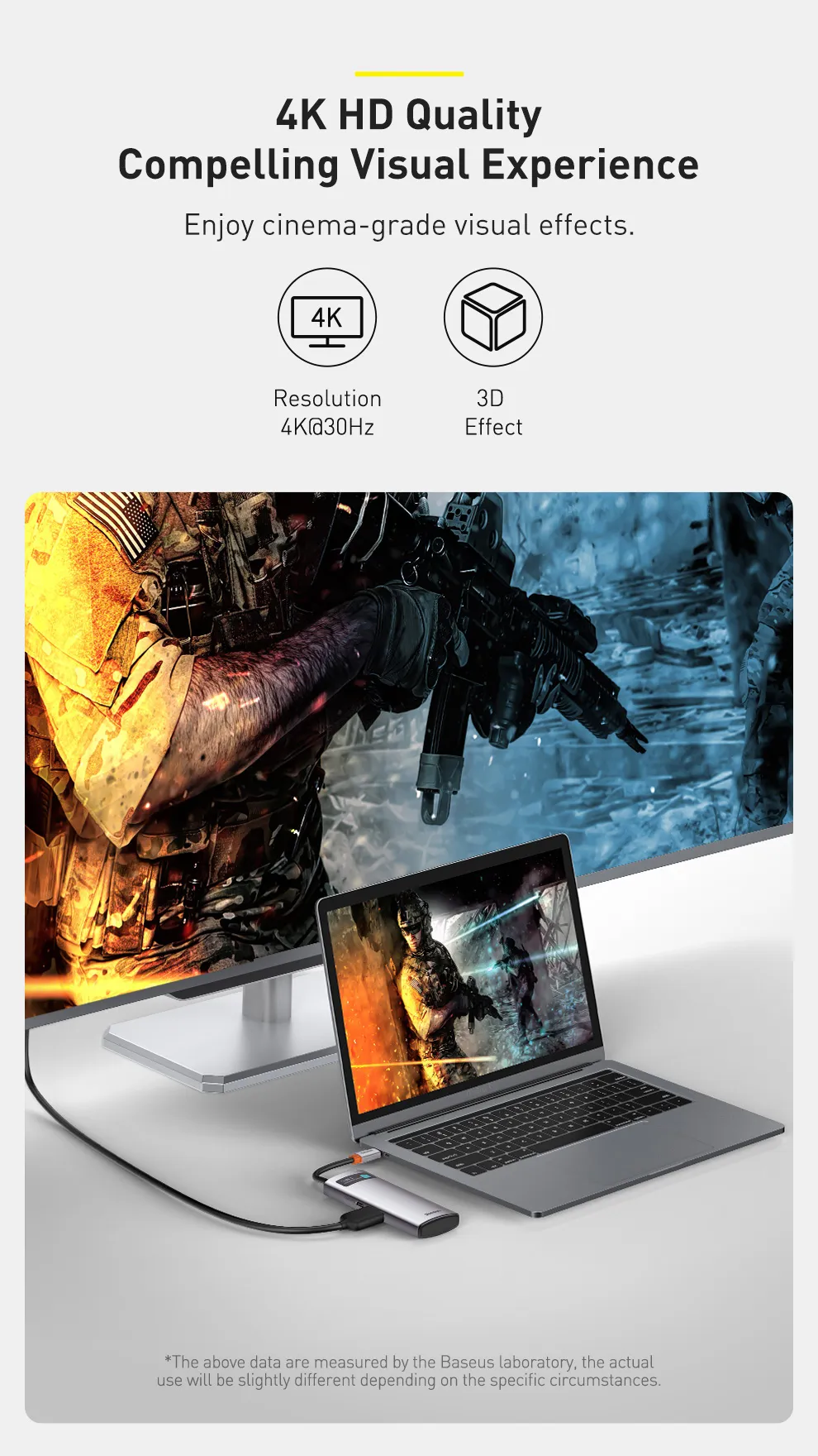 The HDMI output enhances your productivity and entertainment experience by providing a high-quality display option for larger screens. Whether you’re working with spreadsheets, watching videos, or giving a presentation, the Baseus 5-in-1 HUB ensures a clear and crisp viewing experience.