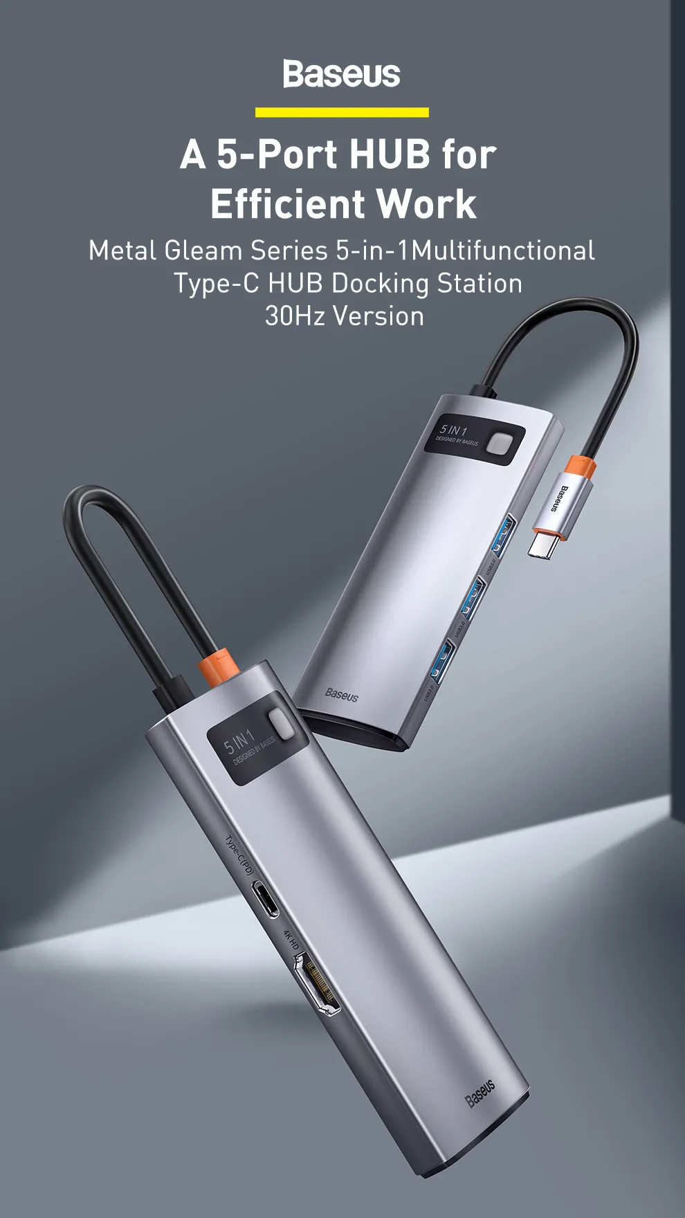 Baseus Metal Gleam Series 5 in 1 Multifunctional Type C HUB Docking Station Gray 30Hz Version: The Ultimate Connectivity Hub