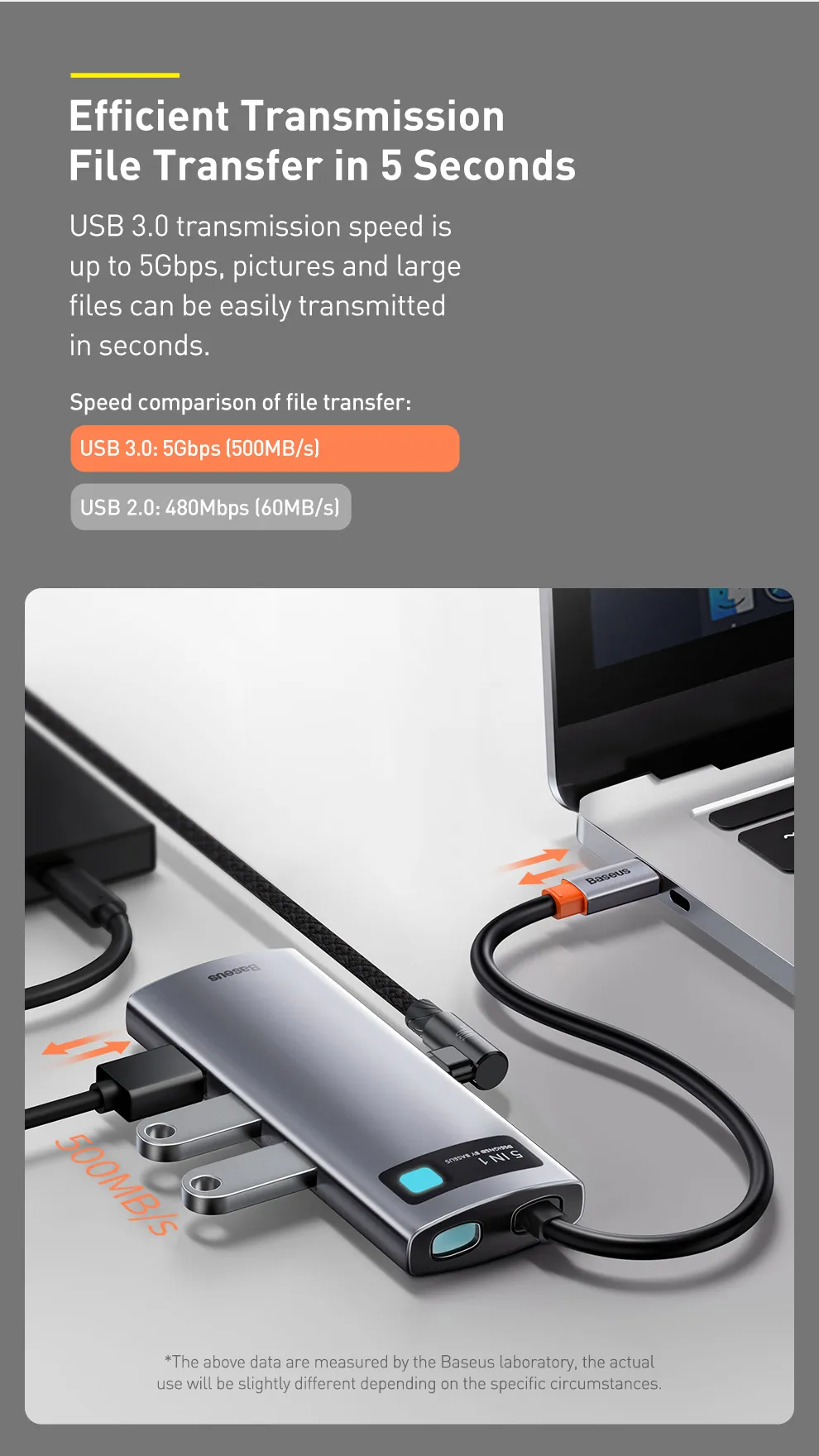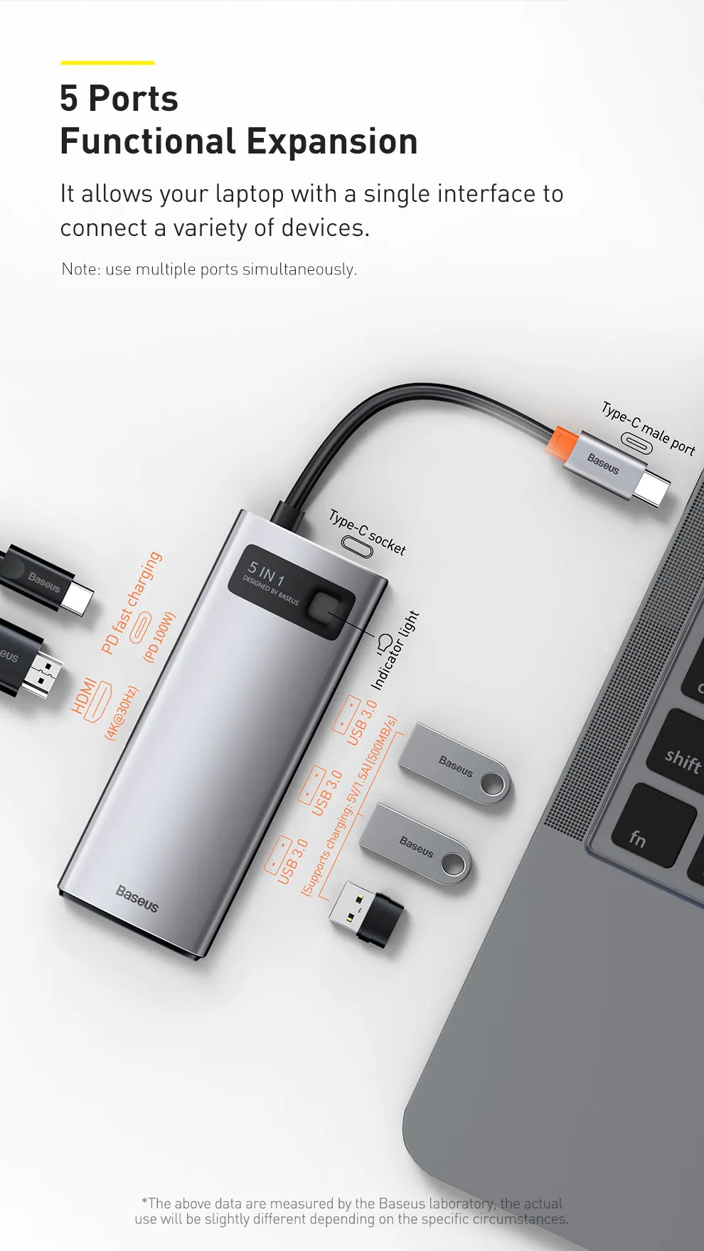 Whether you need it for your office setup, while traveling, or as part of your home tech setup, the Baseus 5-in-1 HUB is a versatile tool that adapts to your needs. It offers convenience and functionality, making it an essential accessory for anyone who requires robust connectivity options.