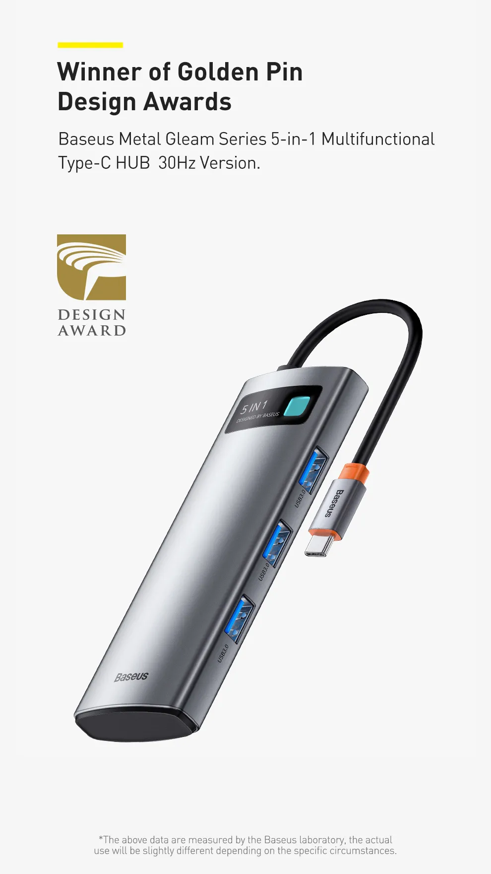 The stylish aluminum construction not only ensures durability but also adds a touch of elegance to your workspace. The Baseus Metal Gleam HUB complements your existing tech gear, offering both practicality and style.