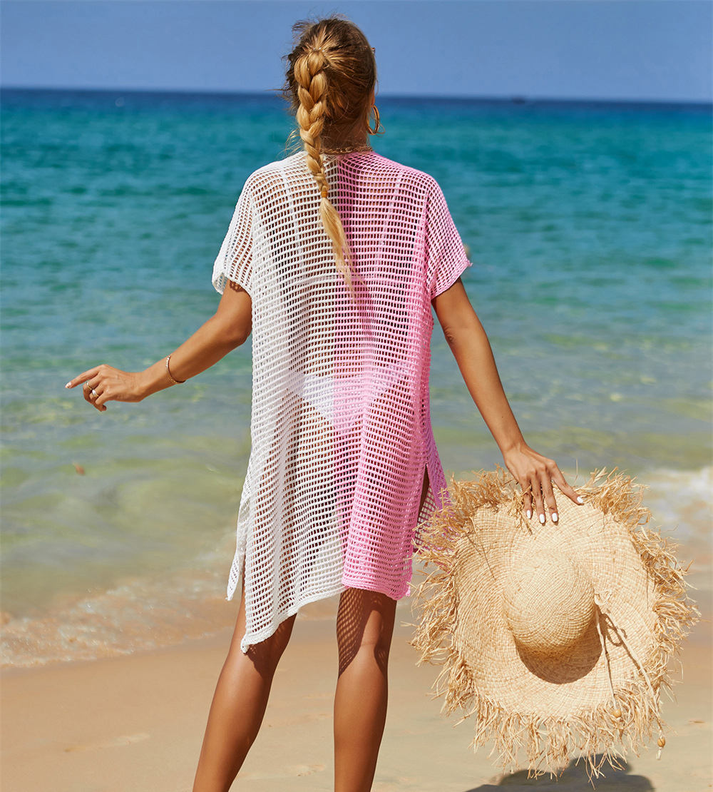 Beach Hollow Out Tops Cover-Up Knit Bikini Over-Blouse