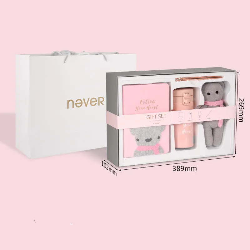 The items in this set serve multiple purposes. The notebook is great for writing down thoughts, goals, or sketches; the thermos keeps beverages at the right temperature; the bear doll adds a cute, comforting element; and the pen ensures that the recipient has everything they need to get started on their journaling or writing journey. The set provides both comfort and practicality in everyday life.