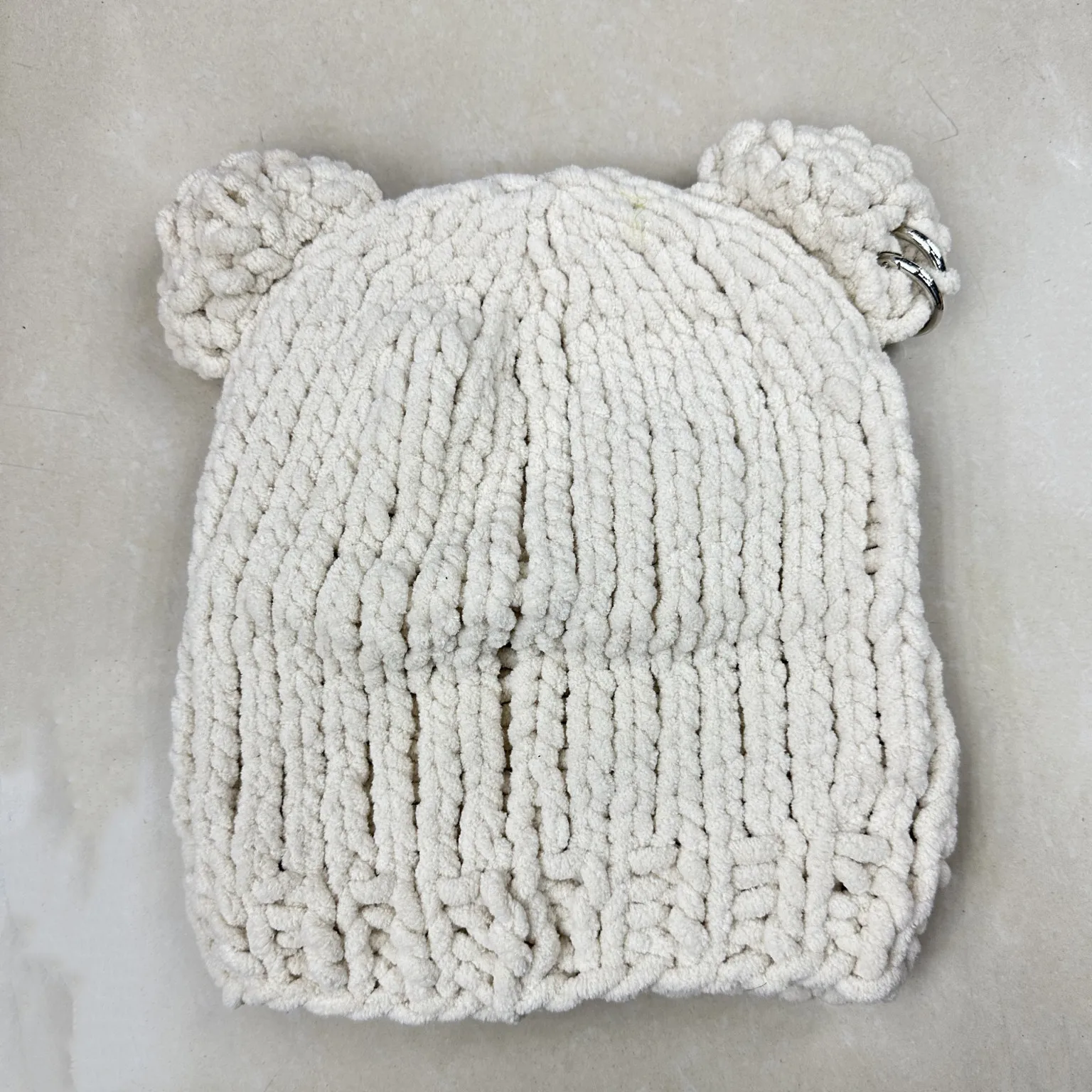 The bear ears and chain circle detail add a fun, cute touch to your winter wardrobe, making this beanie a statement piece for those who love whimsical accessories.