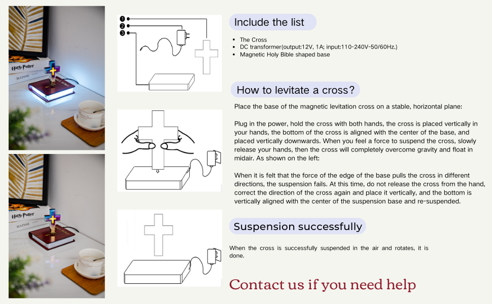 - MAGNETIC LEVITATION DECOR: Imagine walking into a room and an exquisite levitating cross lamp comes into view. It adopts magnetic levitation technology, without any support or contact, it freely hovers in mid-air and rotates automatically, as if supported by a mysterious force. It is like a dancer dancing on the stage, adding a touch of mysterious charm to the surroundings.
