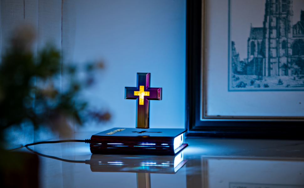 - SEVEN-COLOR GRADIENT COLOR LIGHT: The base is themed on the Bible and uses RGB tri-color dimming technology. When the light is on, it is able to present a variety of brilliant colors, just like the end of a rainbow, exuding a fascinating luster. These colors intertwine as if telling a beautiful and sacred story.