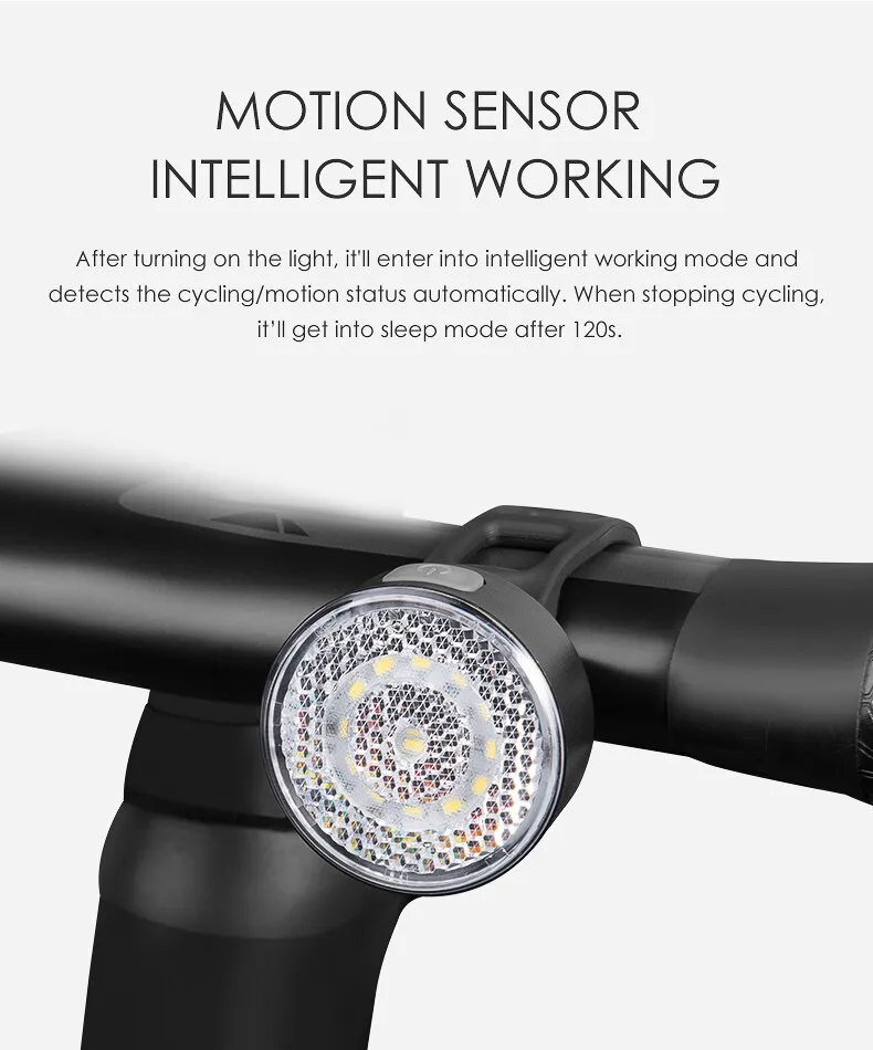 W08 front light works smartly after ignition. It lights up when it detects motion status and turns off when it detects motion stop for 2