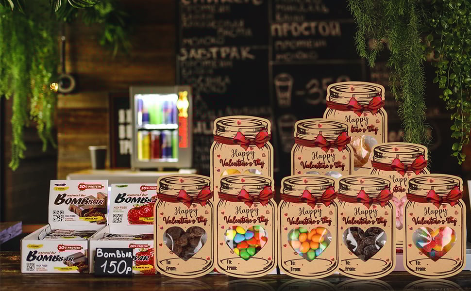 💌Personalized Candy Jar Valentine Cards - Set of 24, 5.9" x 3.5" Kid's Valentine Cards, Classroom Valentines Party Favor