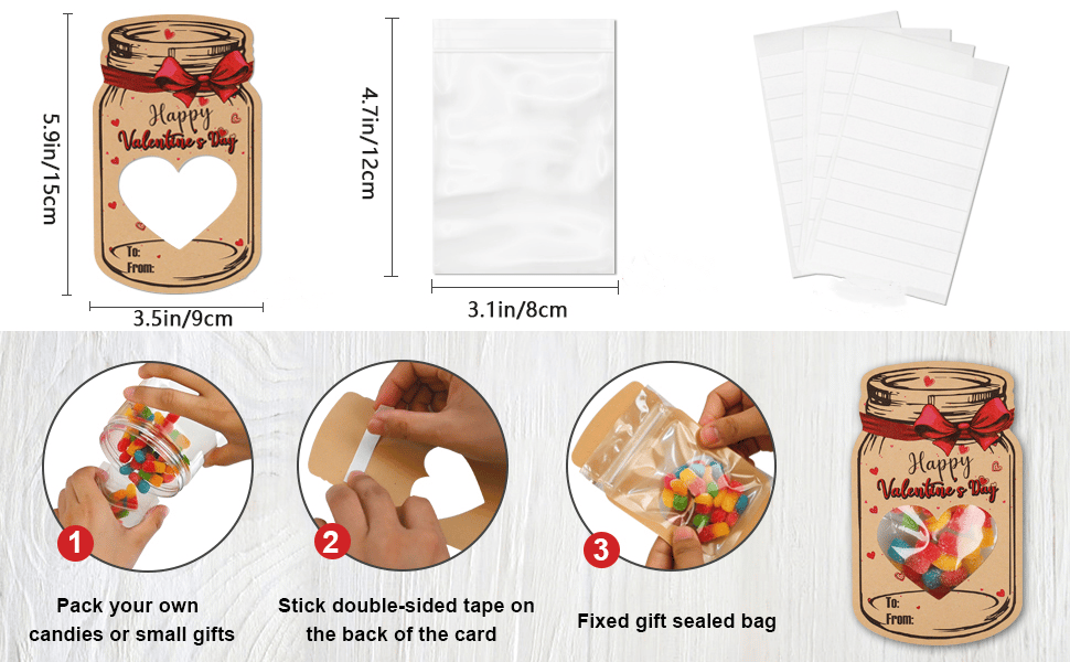 - Put cards and your snacks into one of the included plastic bags for unique Valentine's Day funðŸŽ.
