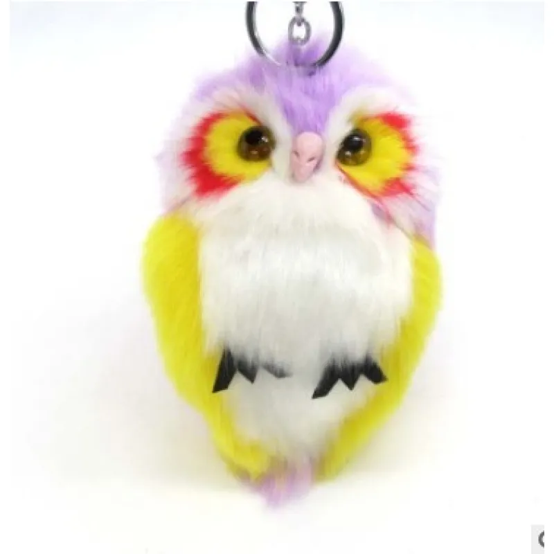 Lovely hairy owl pendant pompon keychain, with fine rabbit fur delicate smooth sweet cute shape to add color to your life, different occasions throughout the year to bring you a different experience.