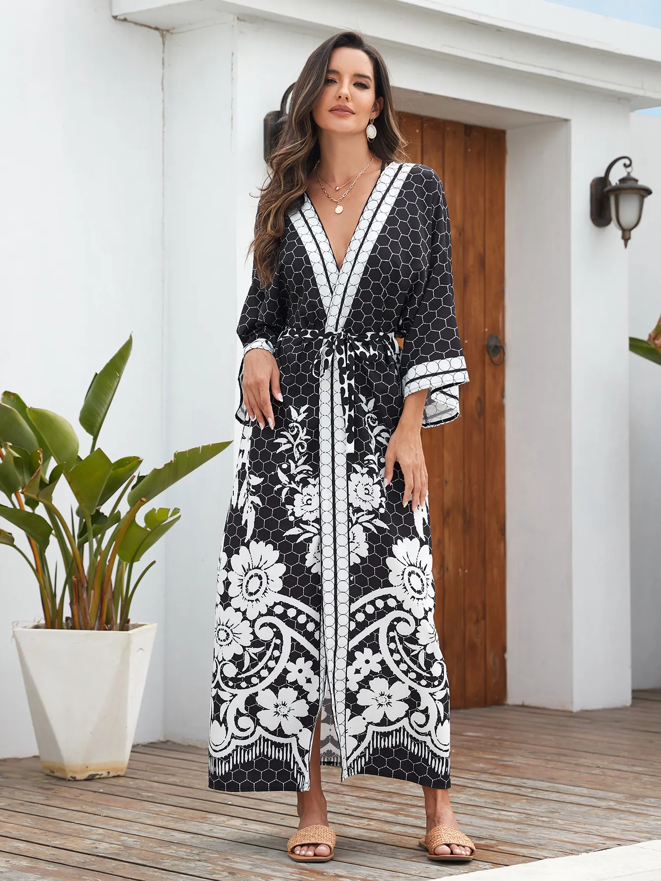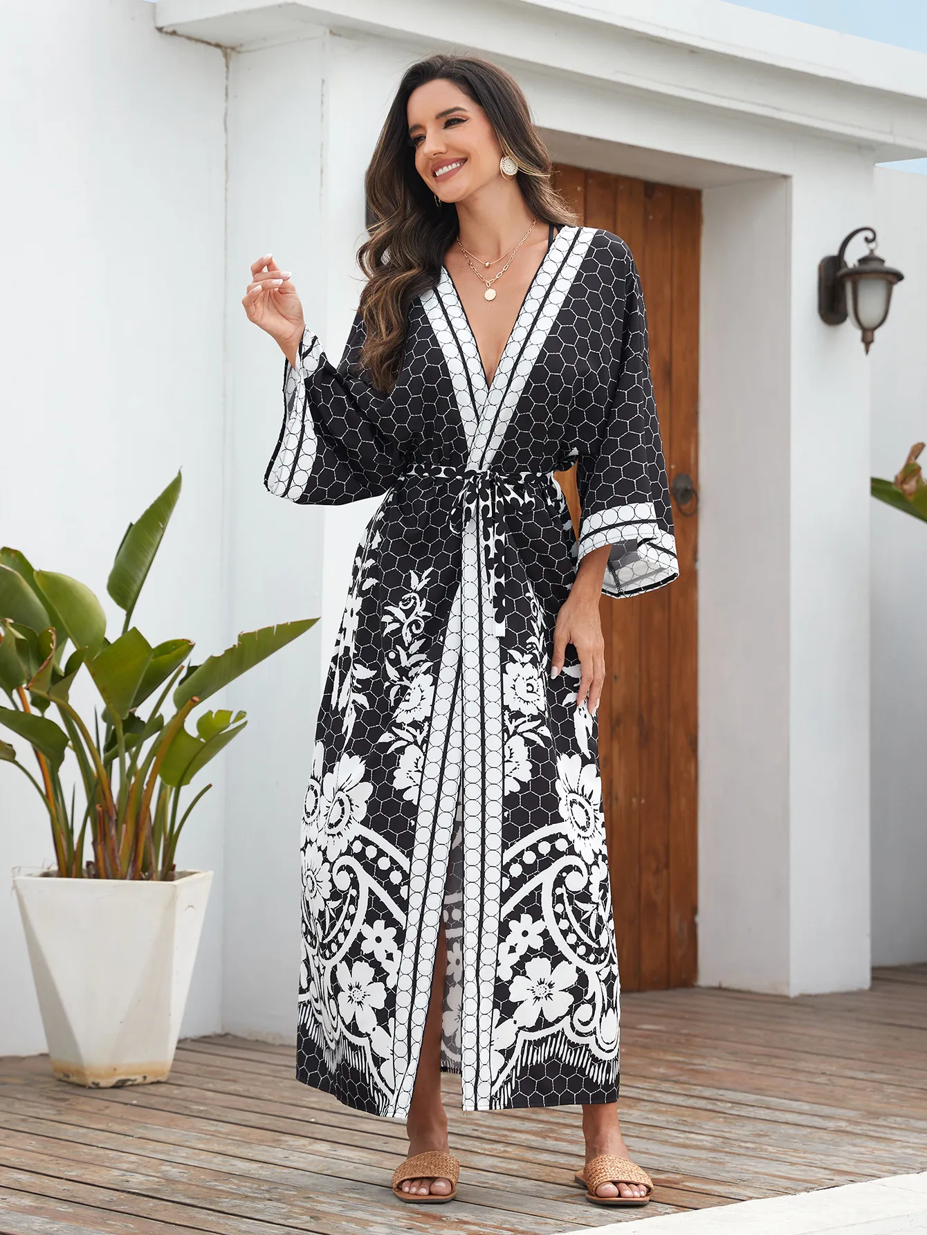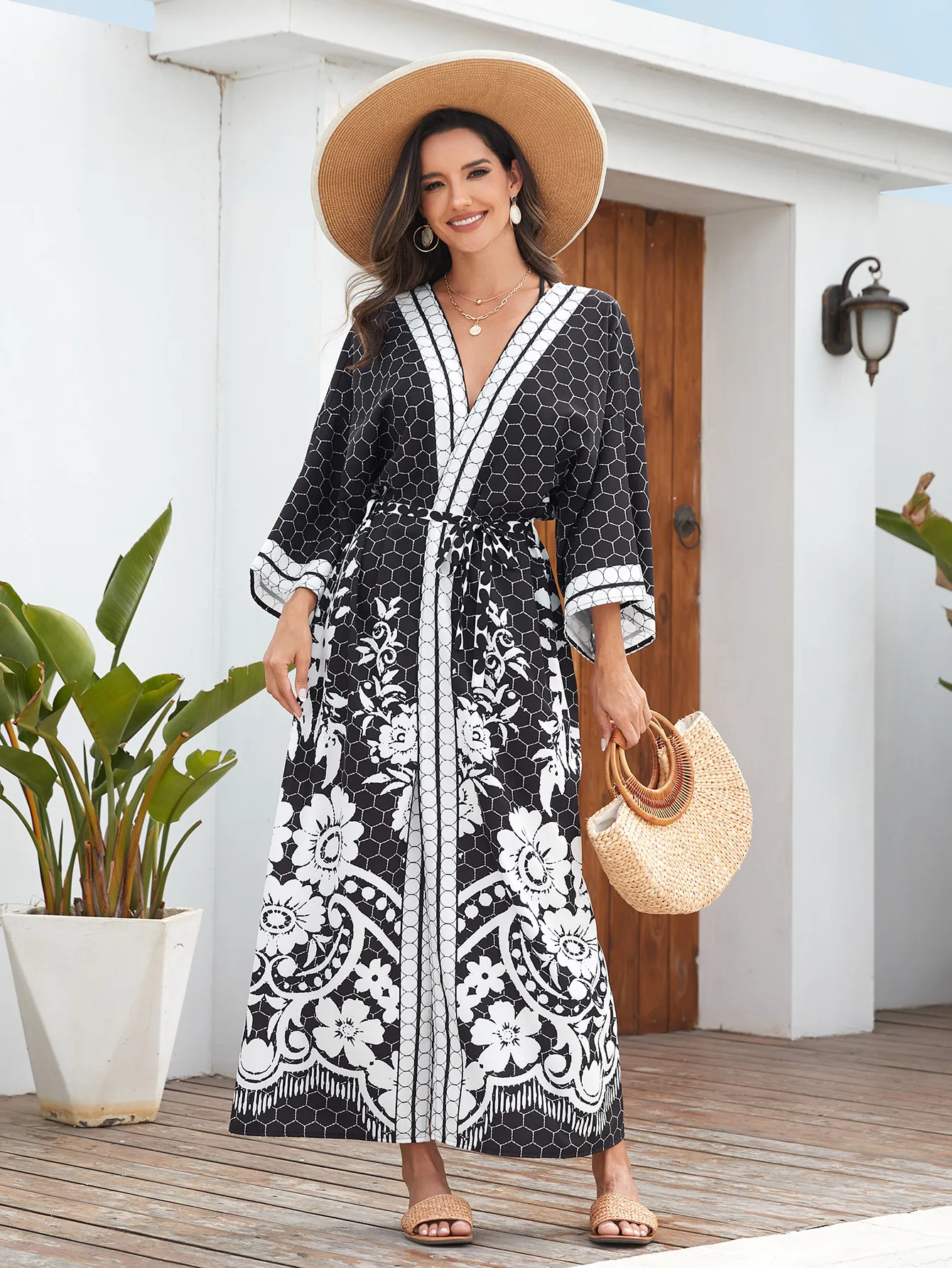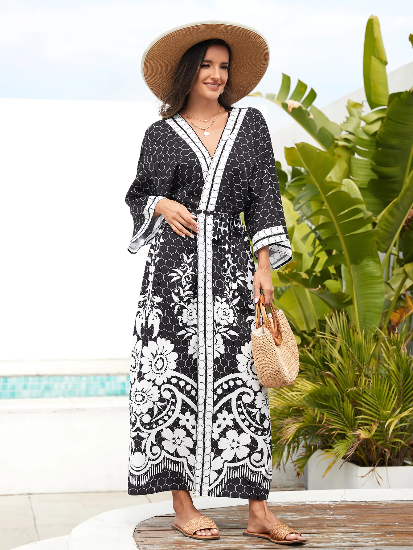 Flattering Fit: The relaxed, A-line cut of the kimono dress flatters a variety of body types, offering a comfortable fit