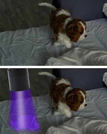 UV-A Light Emission: Emits ultraviolet light in the UV-A spectrum, which makes certain substances glow, such as stains,
