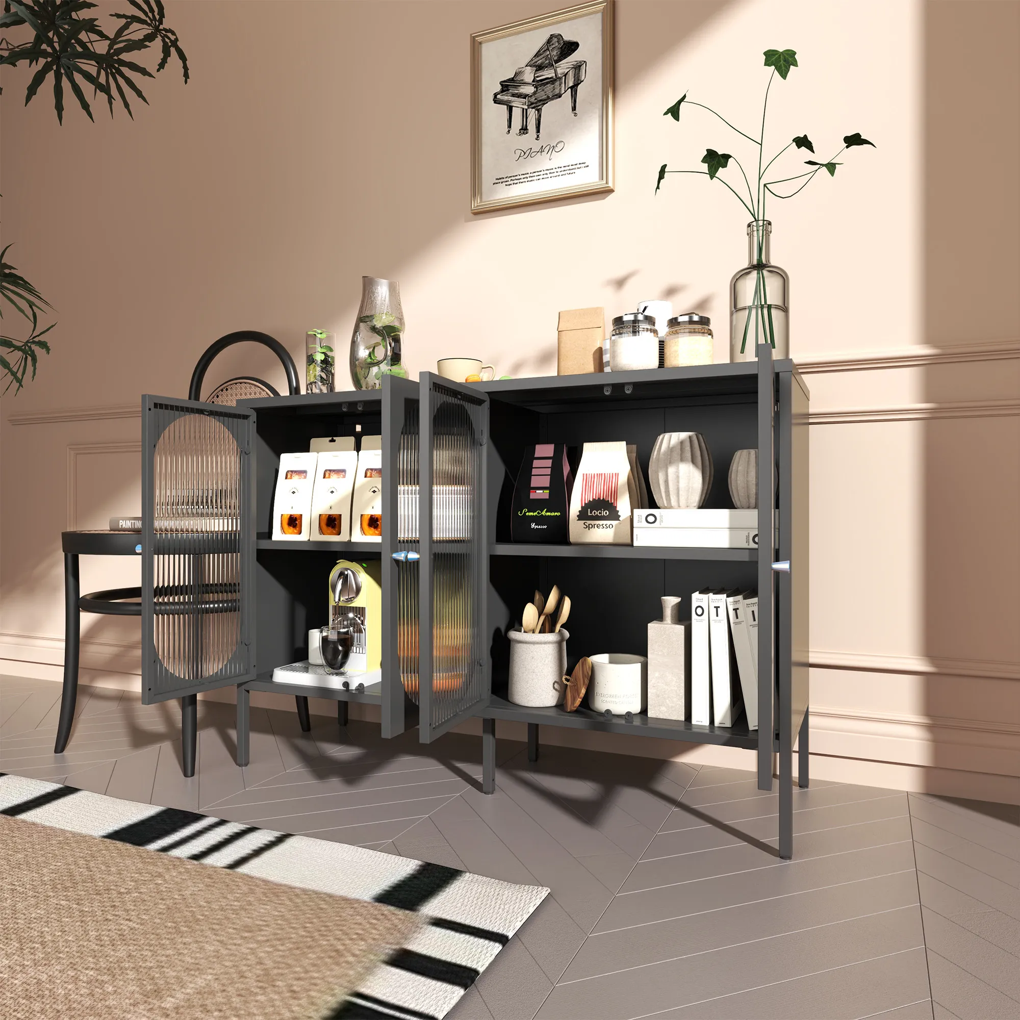 in the office, the black lowboy provides versatile and convenient storage for all your needs.
