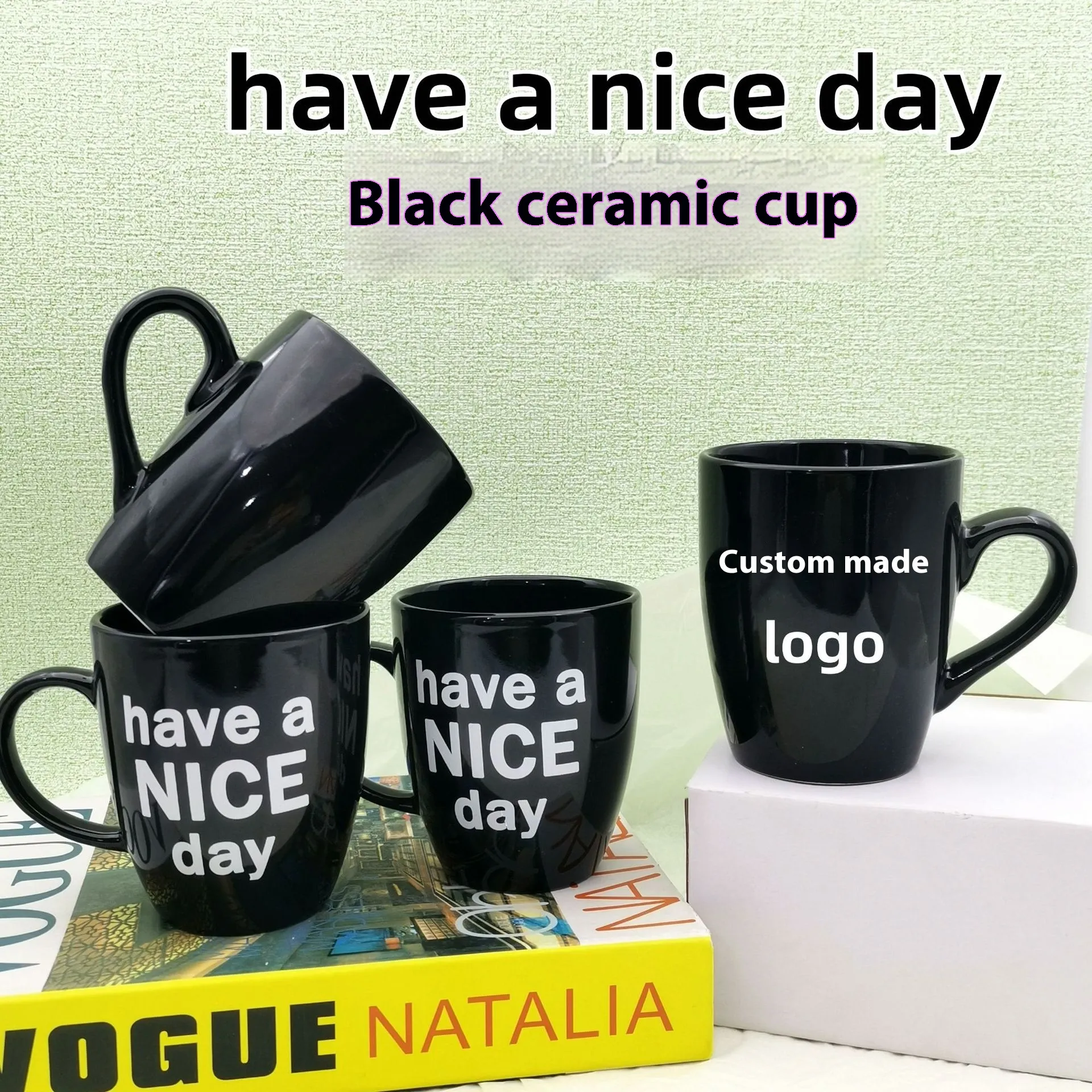 Black Waist Drum Ceramic Have A Nice Day Middle Finger Mug