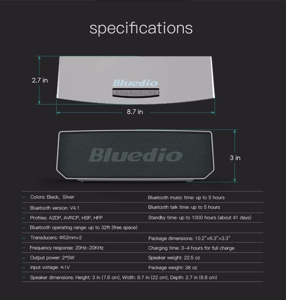 Whether you're hosting a gathering, relaxing with music, or on the move, the Bluedio BS-5 Mini Bluetooth Speaker provides the perfect balance of portability, sound quality, and style.