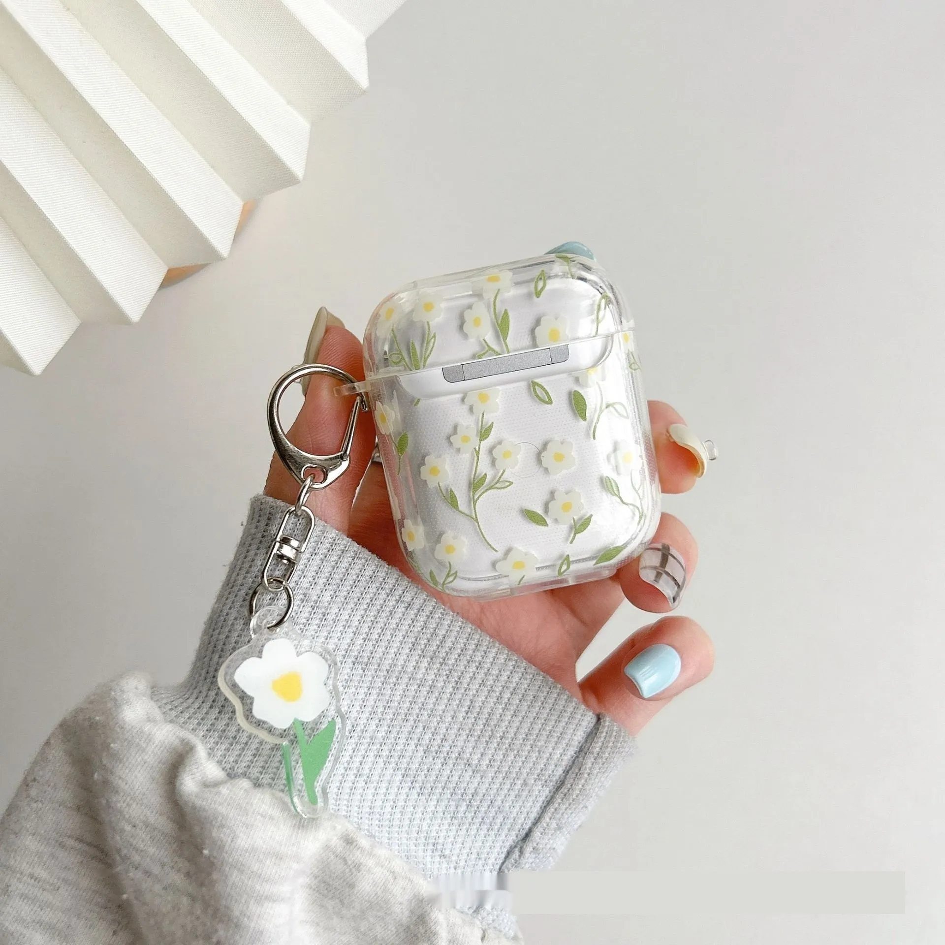 Add a touch of style while keeping your Bluetooth headset safe with this White Floral High Transparent Protective Cover. Designed with a clear casing decorated with delicate white floral patterns, it combines fashion and functionality to give your earbuds a unique, elegant look.