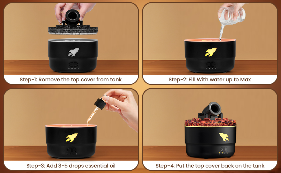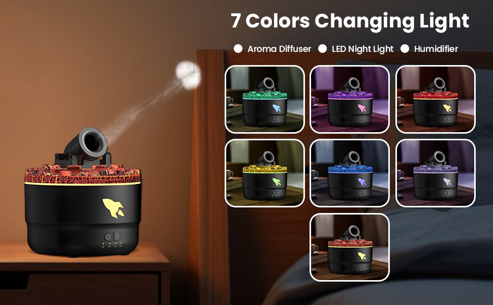 - 2 Ways Of Misting: ring misting simulates a real volcanic eruption, and large-scale misting ensures that the entire room is humidified quickly and evenly.