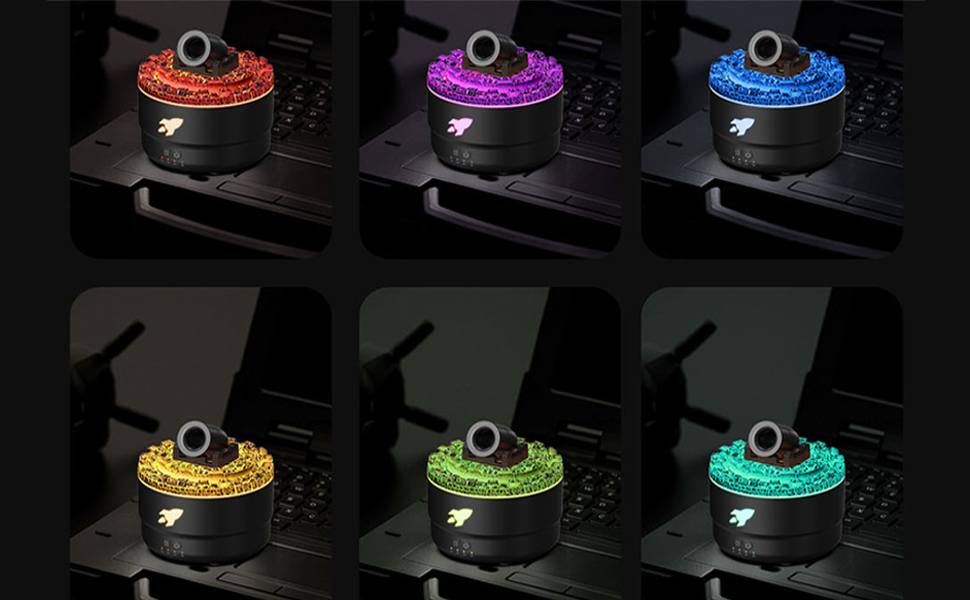 - Create the Perfect Atmosphere with 7-Color LED Lights: Elevate your environment with 7 LED colors that complement the cannon diffuser’s soothing mist. Whether you’re unwinding after a long day or creating a cozy ambiance for bedtime, the customizable lighting adds a magical glow to any setting. It’s more than a vapor cannon humidifier—it’s a mood enhancer