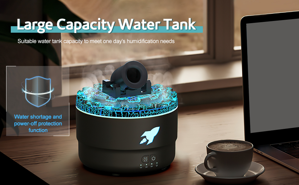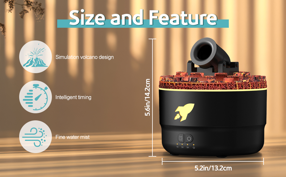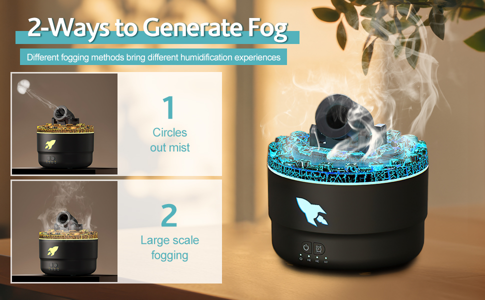 - 2 Ways Of Misting: ring misting simulates a real volcanic eruption, and large-scale misting ensures that the entire room is humidified quickly and evenly.