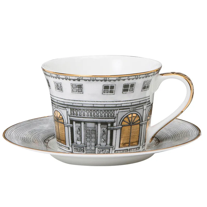 With its refined gold edge and elegant bone china material, this coffee cup set adds a touch of luxury to any table setting. The sophisticated design makes it perfect for both everyday use and formal occasions, ensuring that it complements any dining style. Whether you're enjoying a quiet afternoon with a cup of tea or serving coffee to guests at a dinner party, this set enhances your table’s appearance and sets the stage for memorable moments.