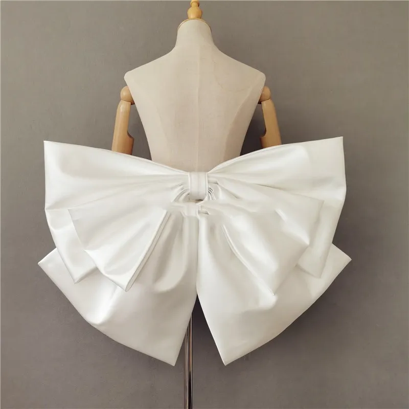 The oversized bow can be placed in various ways to suit your personal style and wedding dress. It can be worn at the back to accentuate the waist or placed at the front or side of the dress for a more dramatic effect. Whether you want it as a show-stopping centerpiece or a subtle detail, the placement of the bow can be customized to fit your desired look. Its versatile design makes it suitable for different bridal styles, from minimalist gowns to more elaborate, couture-inspired dresses.