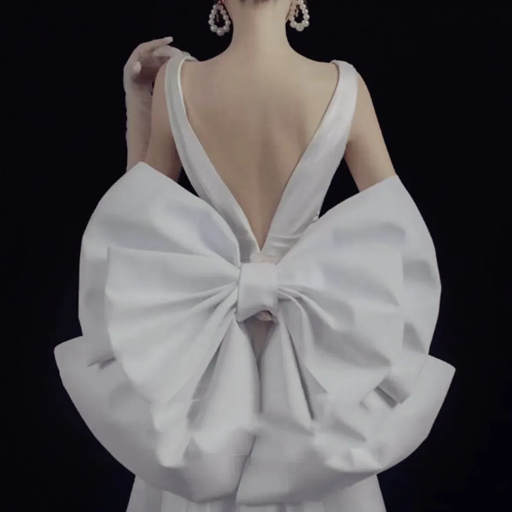 The oversized bow can be placed in various ways to suit your personal style and wedding dress. It can be worn at the back to accentuate the waist or placed at the front or side of the dress for a more dramatic effect. Whether you want it as a show-stopping centerpiece or a subtle detail, the placement of the bow can be customized to fit your desired look. Its versatile design makes it suitable for different bridal styles, from minimalist gowns to more elaborate, couture-inspired dresses.