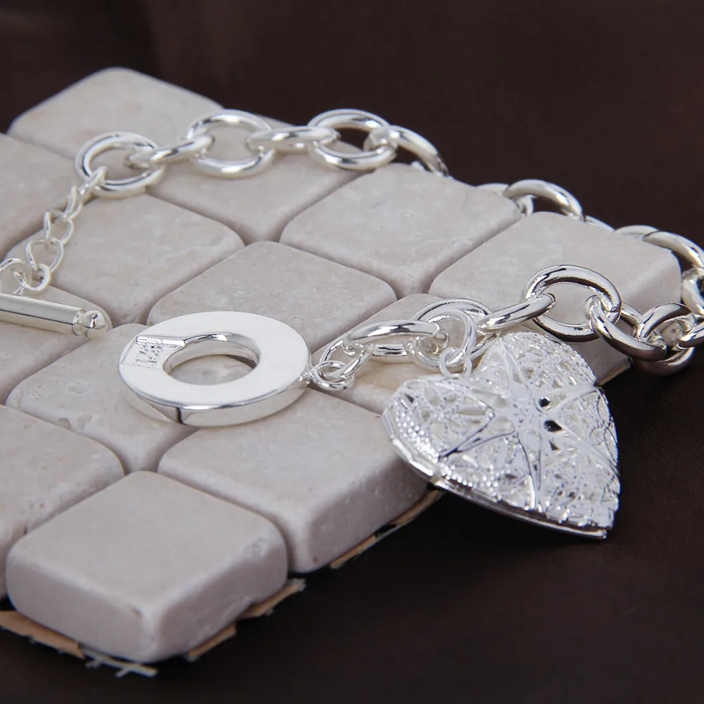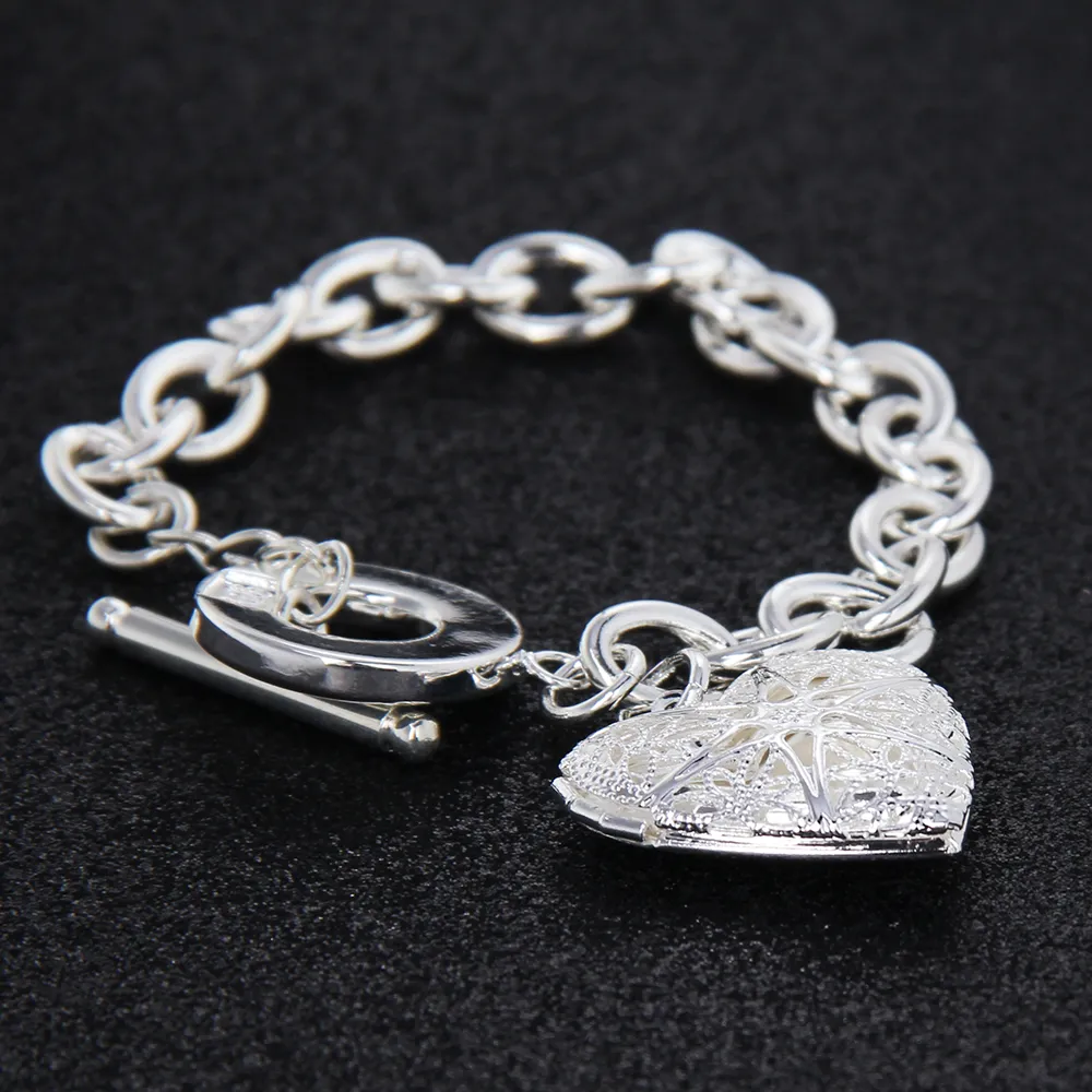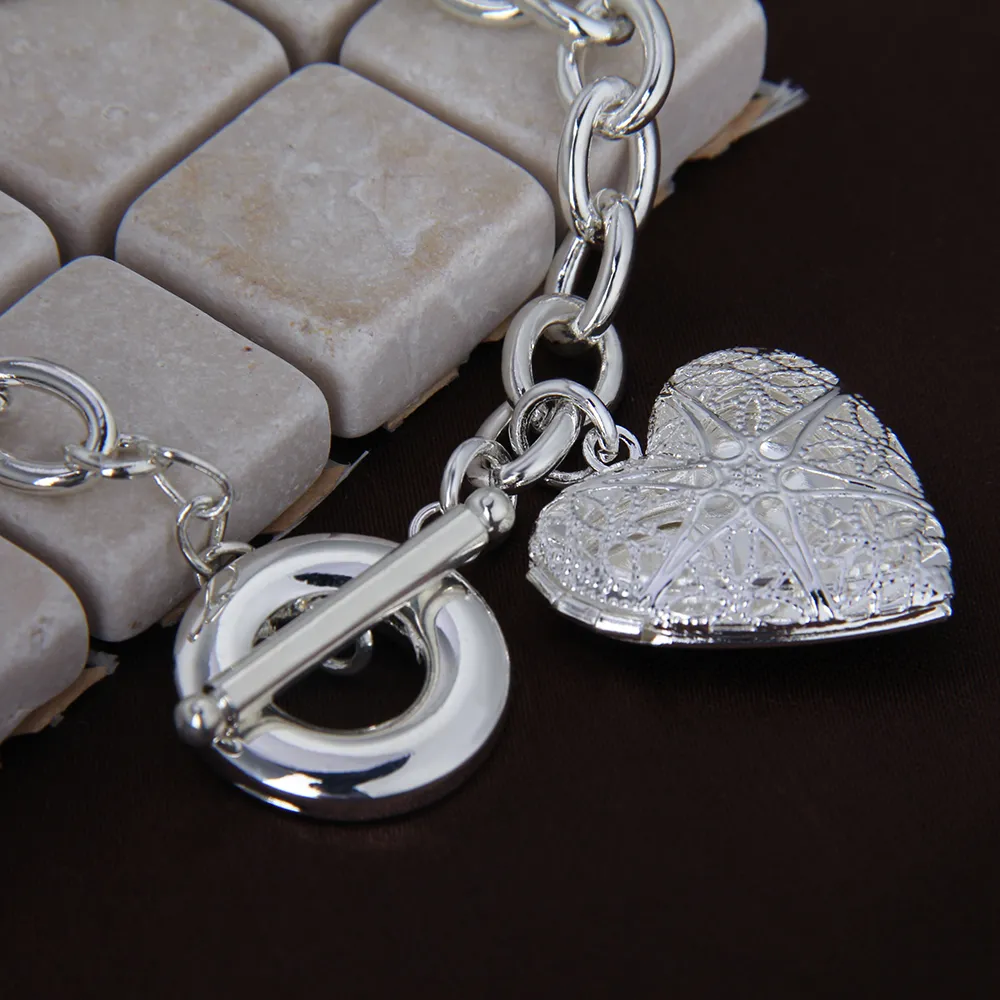 Buckle Mesh Heart Photo Frame Pendant Bracelet