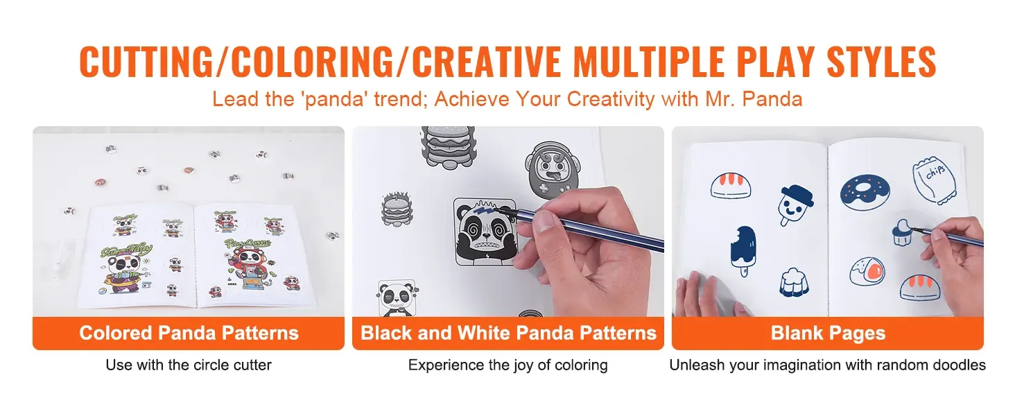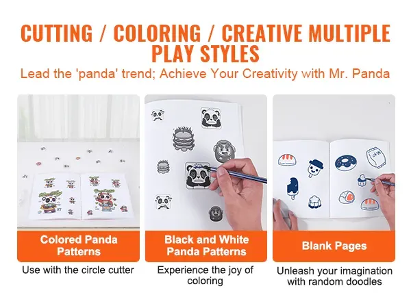 - Exclusive Fun with Mr. Panda: Get creative with our magical book! Three exciting options: 1. Colorful panda patterns, ready to use after cutting; 2.Black and white panda patterns, allowing you to showcase your coloring talent; 3. Blank pages for your creative freedom. Carry your unique Mr. Panda badge and look cool!