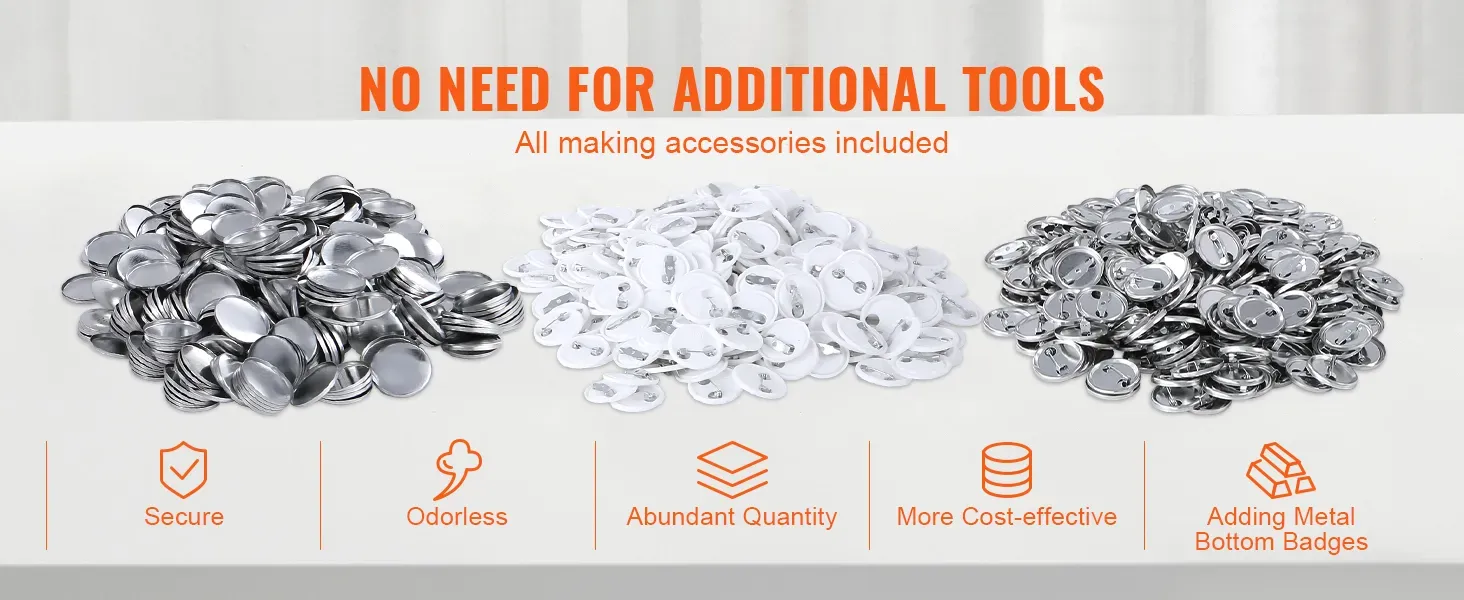 All the accessories you need for badge-making are included. To ensure your and your child's safety, our button press maker has excellent quality and security performance, and the quantity is sufficient for your DIY explorations.