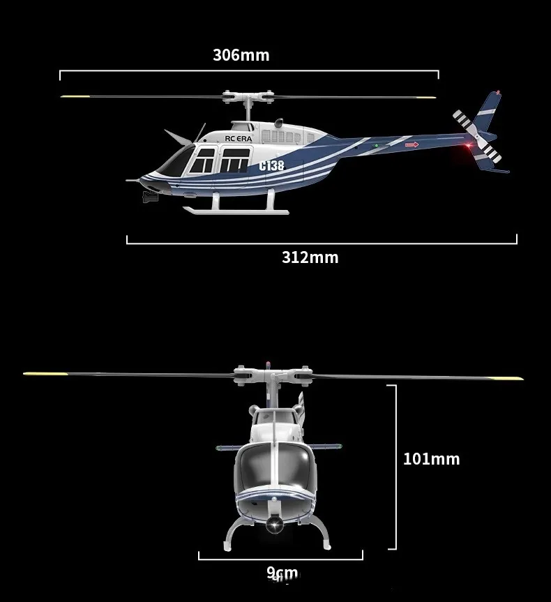 The C138 helicopter comes equipped with double paddle blades, which ensure stable and smooth flight performance. The paddle blades are designed to provide a more authentic and precise flying experience, mimicking the functionality of real-life helicopters. This feature enhances both the look and feel of the flight, offering more control and balance during every maneuver.