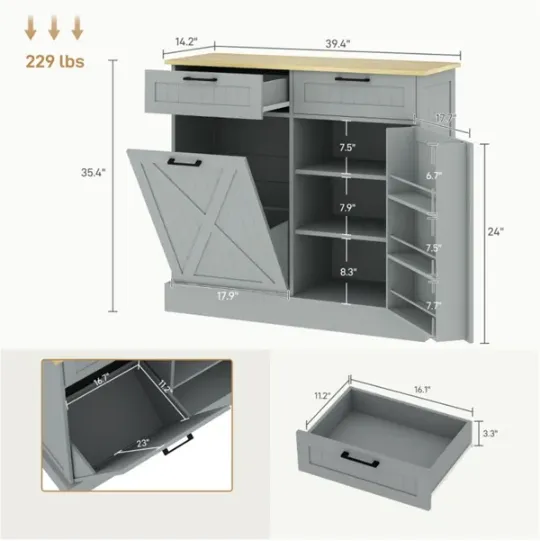 - - Hidden trash can cabinet minimizes odors and maintains freshness