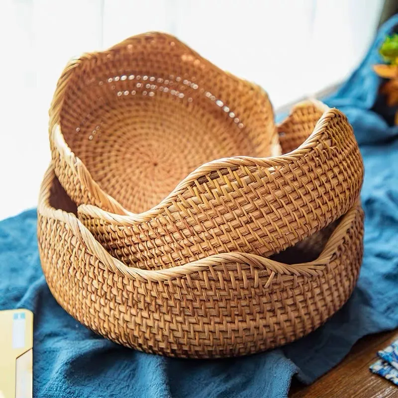 Rattan Woven Storage Basket Fruit Bread Food Kitchen Home Decor Organizer Kitchen Tableware Breadbasket