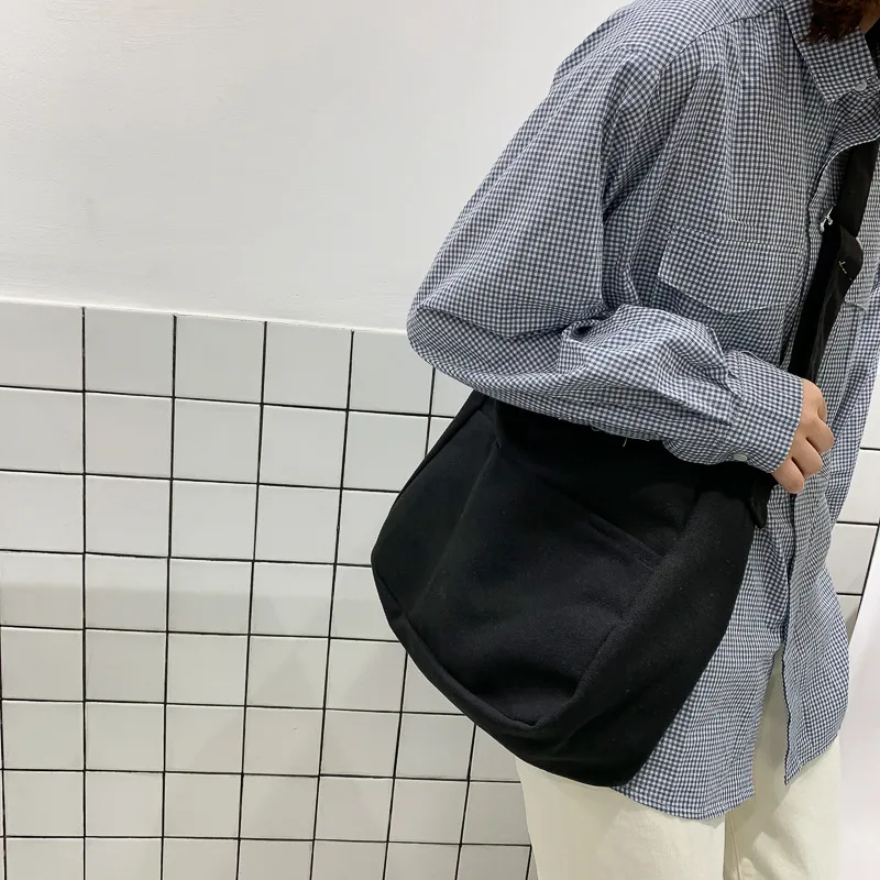 Canvas Shopping Bags Hasp Student Ulzzang BF Solid Book Bag All-Match Large Capacity Crossbody Harajuku Tote-Bags Ins Fashion
