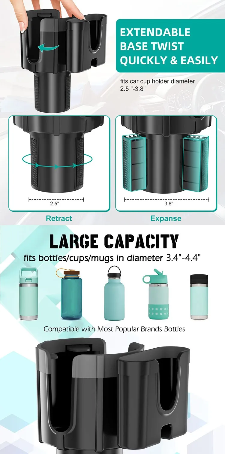 Universal Fit: This car cup holder expander is compatible with most car models, including sedans, SUVs, trucks, and more.