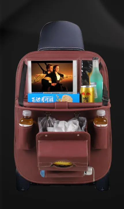 In addition to being a trash bag, this leather seat back storage bag can also be used for other purposes.