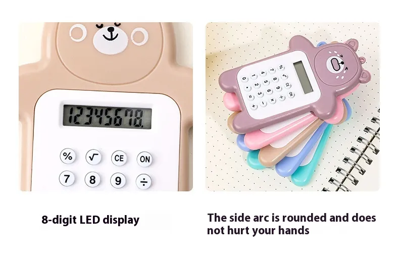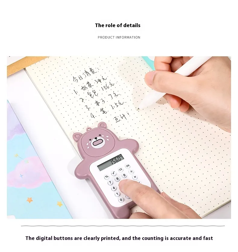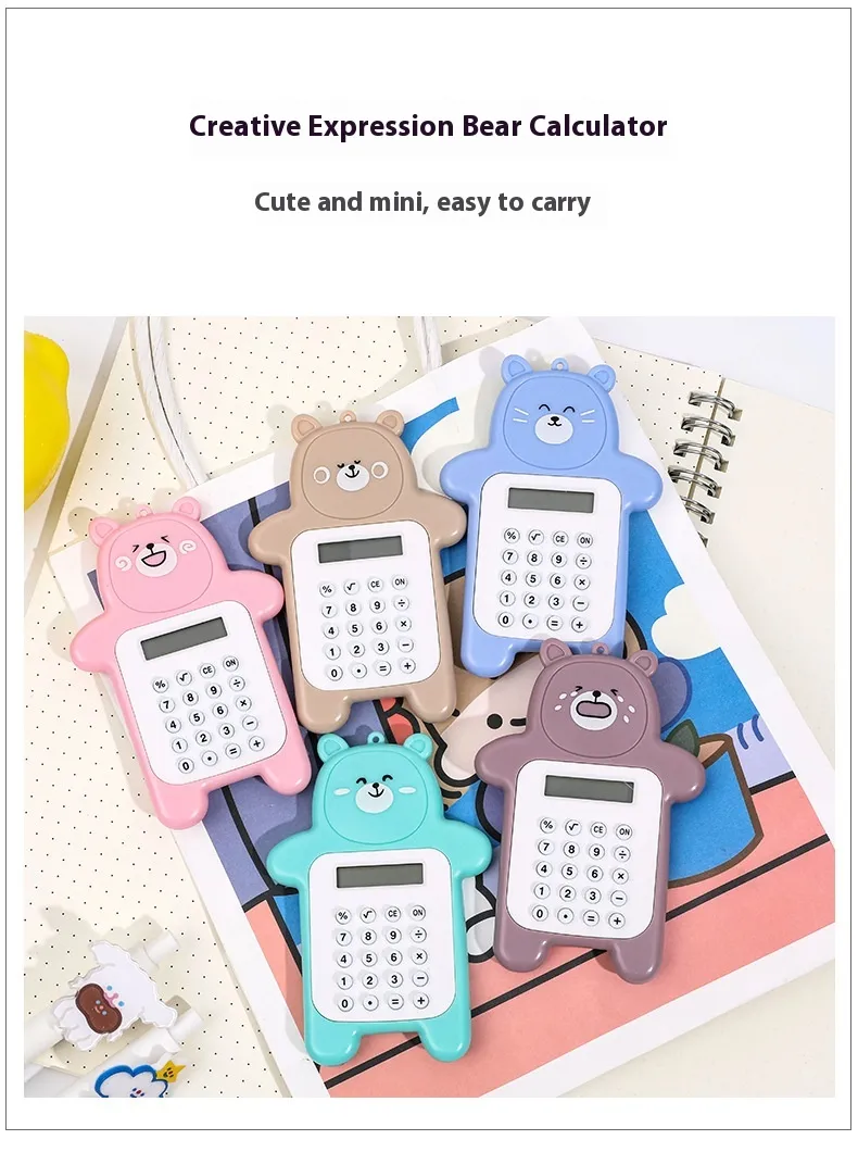 In conclusion, the Cartoon Bear Calculator Student Mini-Portable is a must-have tool for anyone looking for a cute, functional, and portable calculator. With its playful design, easy-to-use functions, and compact size, it’s perfect for students, young learners, and anyone who enjoys adding a bit of charm to their study or work environment. Make math fun and accessible with this delightful calculator that’s sure to brighten up your day and help with your calculations.