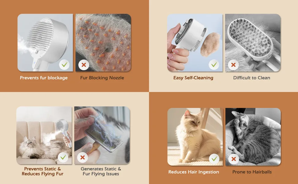 - Suitable for Multiple Pets: Whether you have a cat, dog, or both, the Cat Steam Brush is a versatile grooming tool that works well on various fur types, making it ideal for multi-pet households.